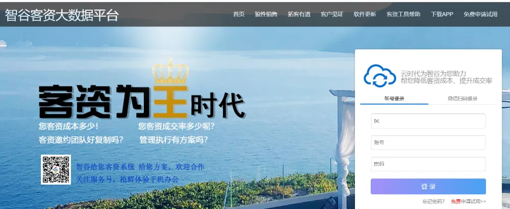 平台版客资系统是云平台噢,所以您只要登入网址就可以,不需要您安装程序!网址:www.xm-zg.com