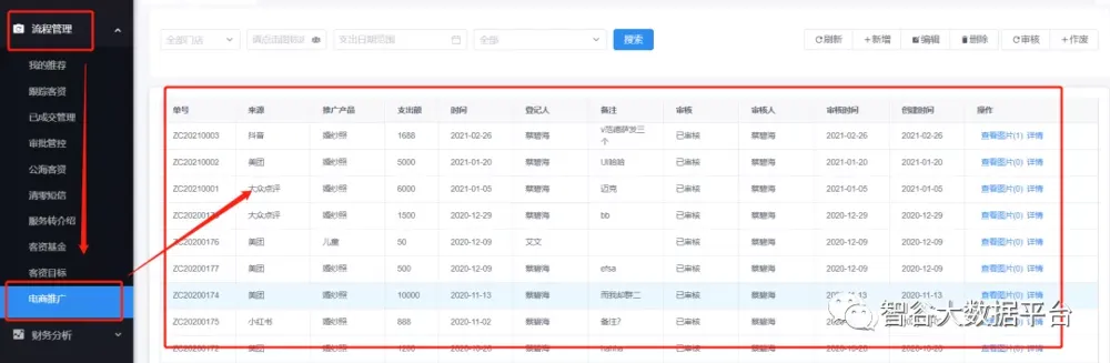 这样我们就可以在流程管理-电商推广 里面查看到每日的明细了!