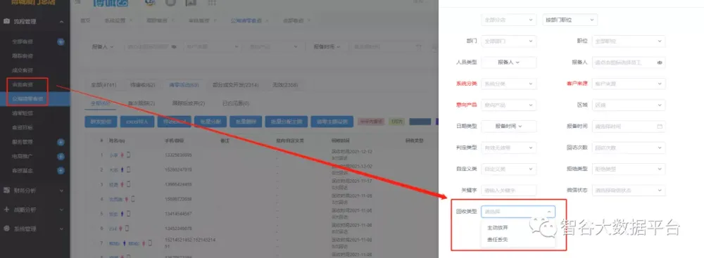 公海区/审批客资--高级查询--回收类型