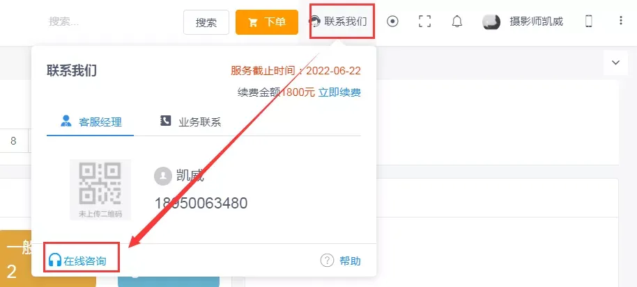 首先如果您在使用云端版本系统中,遇到问题,可以点击右上角的【联系我们】中的【在线咨询】发起咨询。
