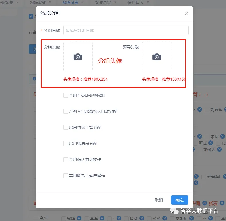 1.系统设置-》分组设置:分组新增上传图片功能