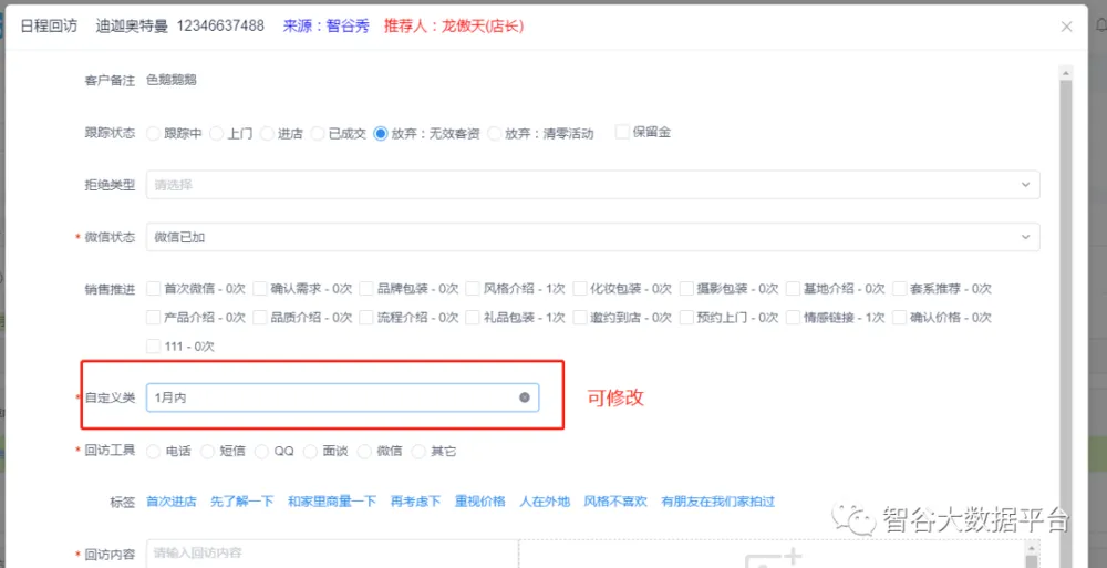 2.日程回访选择无效或者无效拒绝:新增自定义类的修改