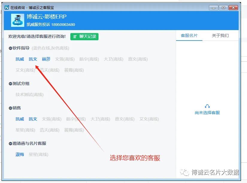 2.联系客服电话 点击登入博诚云软件-点服务续费,您可以选择下方客服、业务、经理的电话来联系沟通。