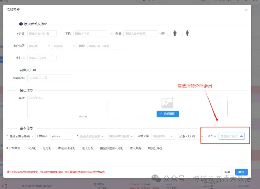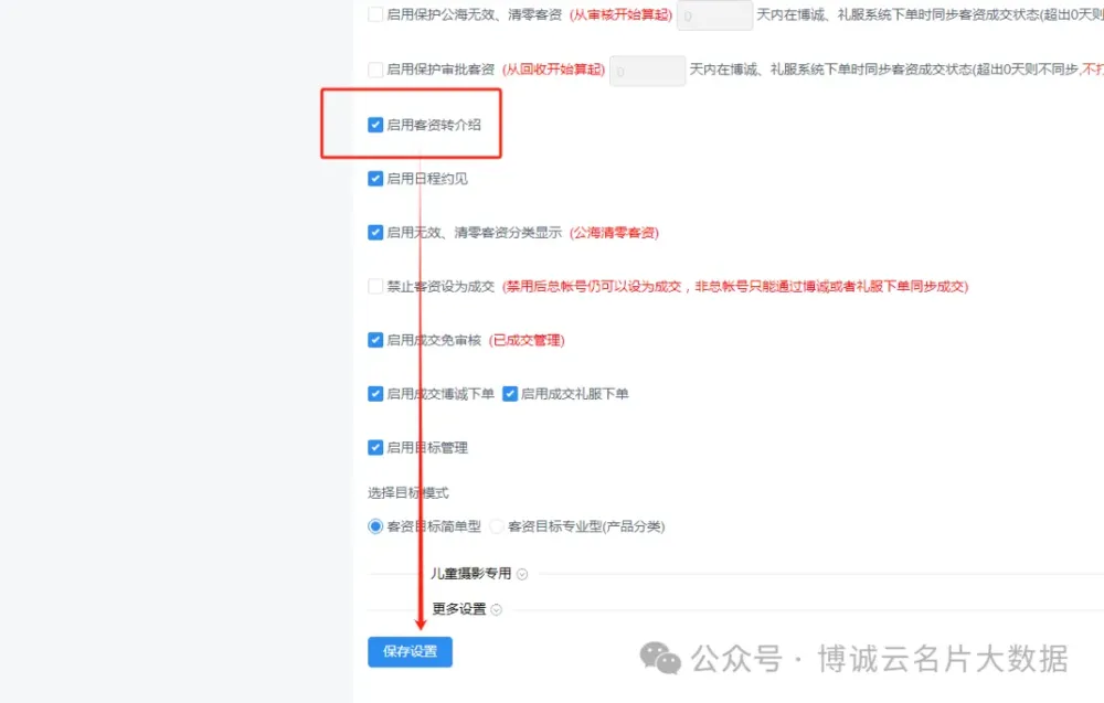 如果您发现客资CRM系统在输入客资时候,并没有转介绍选项,那么请您根据下图开启转介绍客资选项功能(如下图)