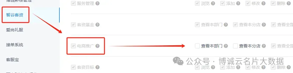 6.电商推广新增‘查看本分店’、‘查看本部门’权限控制