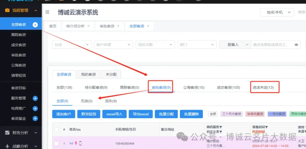 2.全部客资-》审批客资列表:新增无效、流失,全部客资列表新增进店未定客资列表区分显示
