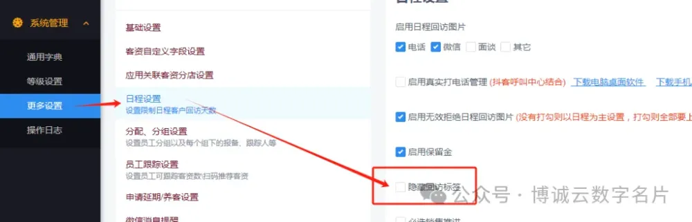 ****需要使用此功能需要在系统设置中检查是否隐藏回访标签哦!