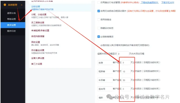 3.加急客资或者养客客资回访时间间隔时间可以调整吗?