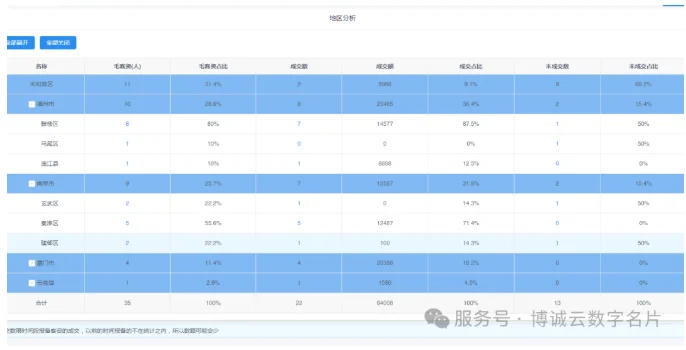总结而言,#博诚云SCRM系统中 的地区分析,是将静态的客户地址信息,动态地转化为关于市场、销售、运营和战略的全方位洞察。它帮助企业从“看名单”转向“看地图”,从“凭感觉”转向“凭数据”,最终实现资源的精耕细作和增长的可视化管理。在存量竞争时代,这片“区域金矿”的价值,正日益凸显。