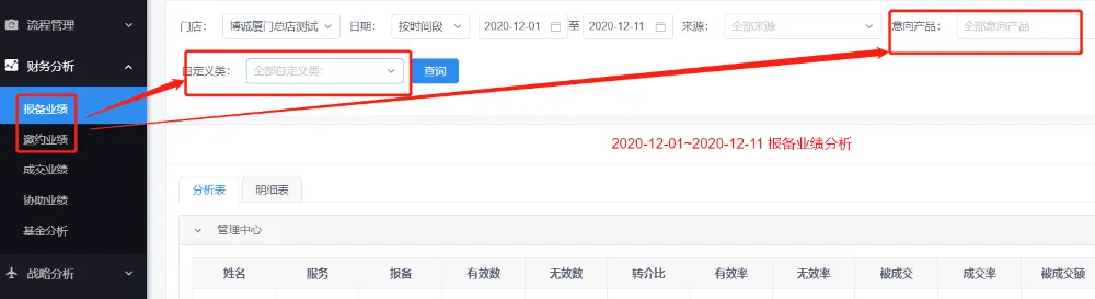 2.报备、邀约、面销业绩新增意向产品、自定义类查询