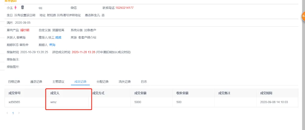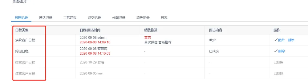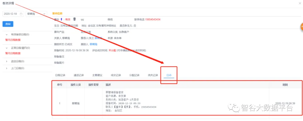 客资详情新增‘日志’选项卡(权限控制),同时客资详细-成交记录中新增成交人员;日程记录中,增加日程类型