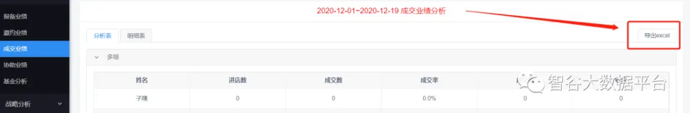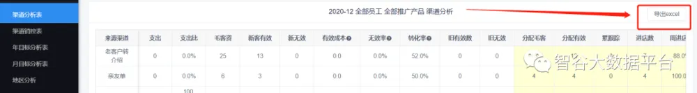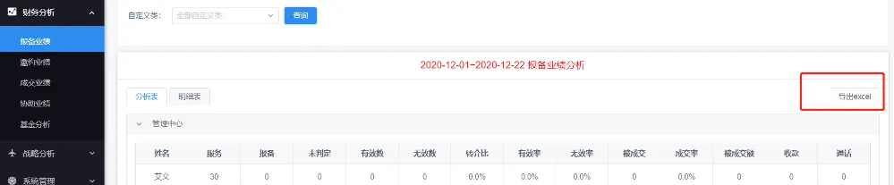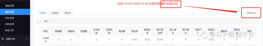 3.报备业绩、邀约业绩、面销业绩、渠道分析导出excel
