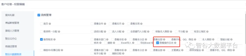 软件优化同时拥有这2个权限,则员工可以查看本部门或者本分组的客资
