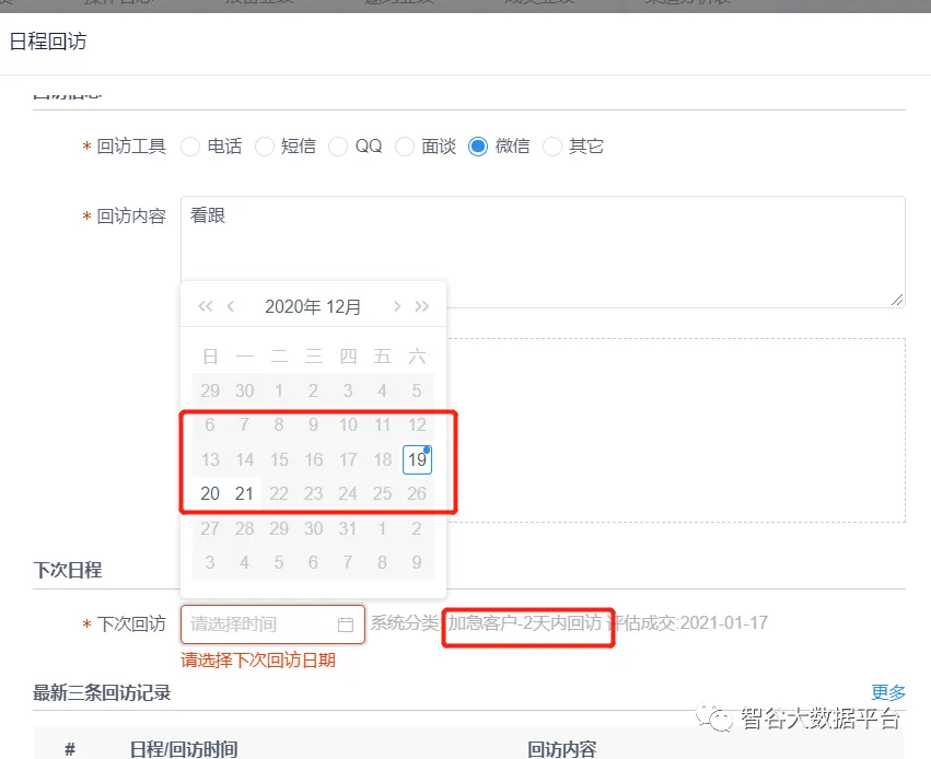 延期:是指有效客资在分配给人员跟踪时,受到系统跟踪天数的限制,如果在有效天数内跟踪日程选择是正常的,如果到了评估成交时间则日程下次时间只能选择到评估成交时间,故需要在客资里面点延期申请客资跟踪的有效时间!否则客资会被系统回收。